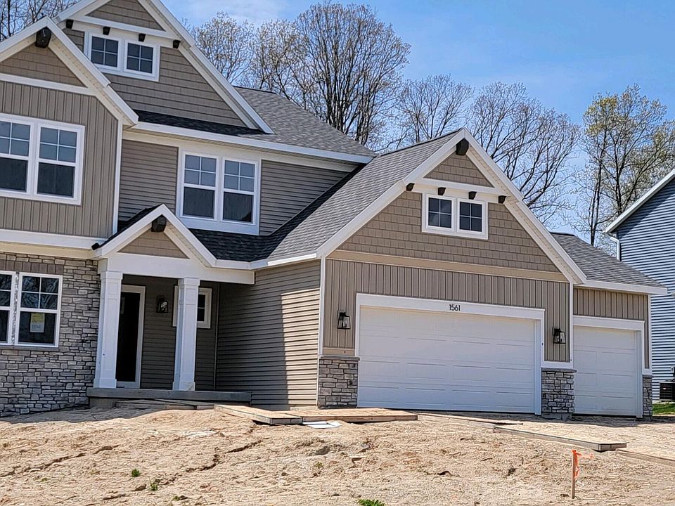 Under Construction! Lowell Schools. Beautiful ''Maplewood'' plan by JTB Homes. This 4 bedroom 2 1/2 bath home is a great mix of flair and functionality. From the minute you walk in the front door, you'll notice the large foyer flanked by a Flex Room/Office and a switchback staircase. The home opens up to an open concept Living Room, Eating Area and Kitchen with center isle and solid surface counters. Large pantry for all of your storage needs. Mudroom with lockers and a 3 car garage right outside the door. Upstairs you'll find a large Primary Suite with walk-in closet, as well as a second floor laundry. May/June '23 anticipated completion.