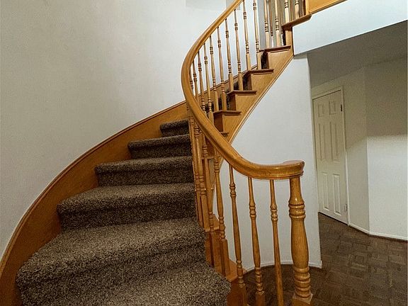 Enter the home on a decorative wood parquet floor platform and see the solid oak curved staircase. Downstairs you'll find a living room, wood burning stove fireplace insert, family room, formal dining area, laundry room with storage, 1/2 bath, and large kitchen with walk in pantry, island, and bar counter. The Primary bedroom has a huge closet with mirrored doors, Roman tub, separate shower, private commode, double sinks, and a balcony that overlooks the backyard and captures the beautiful sunsets. The second bathroom has tub/shower enclosure and double sinks. There is also a retreat room with a fireplace (which could easily be converted to a 4th bedroom).