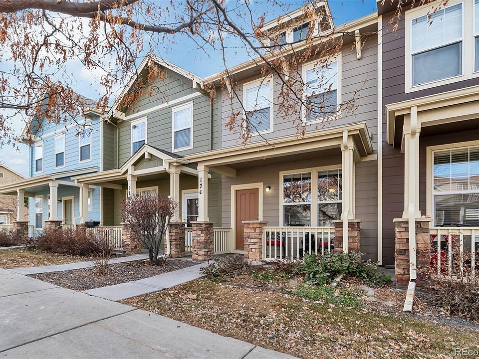 Welcome Home! VERY Rare Home at $265,000 with 2 Car Oversized Garage, Private Patio, Open Layout, Large Kitchen, Hard Wood Floors, High Ceilings, Wired For Surround Sound and Low HOA's! This Property is Located in the Newer Up and Coming Reunion Area which Features Restaurants, Brewery, HUGE King Soopers, Newer Schools, Trails, Golf And MUCH More! Close to DIA, Gaylord, 20 Minutes to a Rockies Game, Close to all Highways and is an EASY Commute. A little Paint would go A LONG WAY in this Cozy Unit! Buyer and Buyers Agent to Verify All Information !