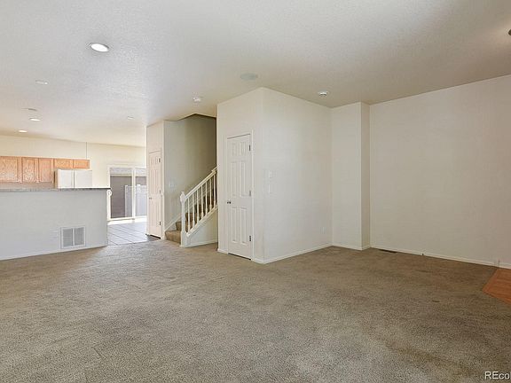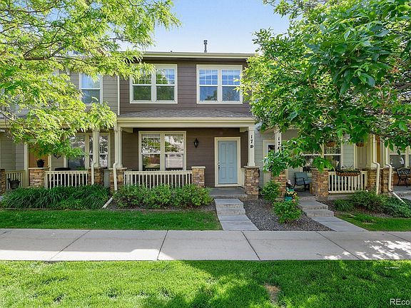 Come home to this quiet and lovingly maintained community. This townhome is move-in ready and very clean! This sunny and light 3 bedroom, 2 1/2 bathroom home is turn-key and offers uninterrupted mountain views, ready for you to enjoy. 2 car garage with small private yard for outdoor entertaining. Main level has an open floor plan with spacious eat-in kitchen and a huge island, formal dining room, living room, and powder room. Upstairs you'll find a stunning master suite with vaulted ceilings, a 5 piece en-suite bath, and tons more natural light. Also on second level there are another two good-sized bedrooms, another full bathroom and convenient upstairs laundry. Don't miss this one, it will go fast! Conveniently located very close to Denver International Airport. Just north of Rocky Mountain Arsenal National Wildlife Refuge. Lovely parks and trails nearby! Don't miss this chance to move into Fronterra Village!