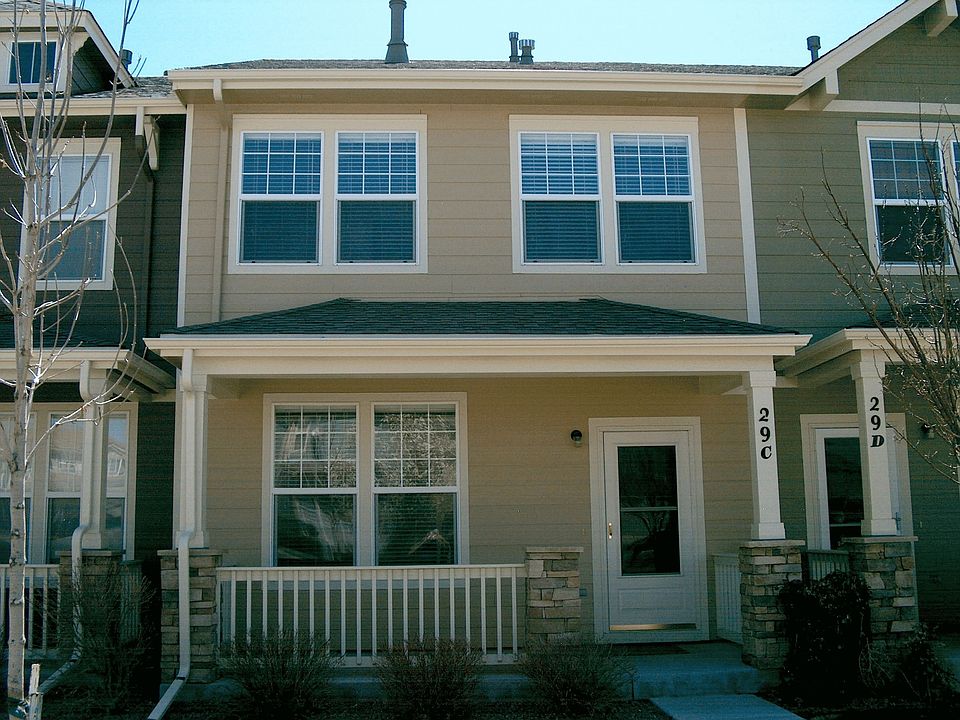 Are you looking for something ready to move in? No exterior repairs or maintenance all cover by the HOA. Also the rent includes the HOA fee. This home has a covered front porch really nice for sitting and relaxing as you review your day or just drinking the cup of coffee while reading the mystery book. As you walk into the home very open floor plan nice size family room and dinning room or sitting area also large eat in kitchen with 42 inch oak cabinets and lots of counter space plus there is one half bath on the main level. The kitchen also walks out to a large deck for those BBQ's and to the two car garage. Upstairs there is a large bedroom with beautiful ceiling fan large bathroom with oval soaking tub shower and walk in closet. The laundry room is also upstairs close to the bedrooms so no walking laundry up and down steps. There are two other bedrooms plus a full bathroom in the hallway. There are 2 inch blinds throughout the home. Are you working in DIA this would be a close drive for you. This is the newer part of Commerce City and the townhome was built 2004. No pets please.