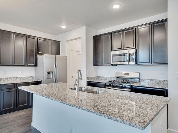 A brand new Cayson Plan located in Jackson Creek features: gourmet kitchen with 42" Espresso cabinets, granite counters, gas 5 burner stove top, microwave, dishwasher, refrigerator and huge island! Upper level contains: laundry room and extra storage - Spacious Master Suite contains a huge walk in closet and attached bathroom, and a Jr. bedroom suite with private bathroom. The entry to the home is sun filled with transom window and set window in front door. Open living concept with extra wide staircase. Full unfinished basement with rough-in plumbing, 50-gallon water heater, sump pump and plenty of room for storage. The stairs going into the basement have been finished for a great look and feel. Home comes with all the kitchen appliances and a garage door opener installed. In nationally recognized School district 38, close to parks and trails. Just minutes to I-25, easy access to Denver and Colorado Springs. Builder offering incentives off of closing costs. This home is available NOW!