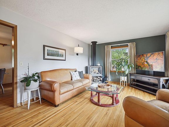 This fantastic starter home offers some significant updates with a blend of mid-century charm. The living room with a cozy wood-burning stove fireplace welcomes you as you enter. The original hardwood floors on the main and upper levels are in excellent condition, and the large front window captures abundant natural sunlight. The mid-century kitchen with stainless appliances is adorable and overlooks the large,