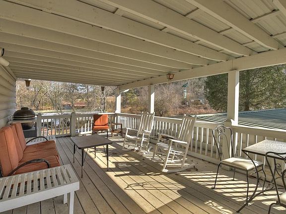 Authentic Log Cozy Ranch Home has timeless character...this 3 bedroom/2bath home is situated conveniently close historic downtown Blue Ridge, just off scenic paved road, yet tucked away on near BR Lake, Toccoa River, and trailsspacious layout includes vintage vibe from original cabin, yet features updates galore, updated appliances adorn roomy & rustic kitchen, open living & dining areas boast toasty fireplace and welcoming feel, barn wood & stone accent walls, plentiful windows throughout, warm wood floors, large utility room, 2+ car garage with workshop addtl work & body shop area great for home business or storage, covered rocking chair front porch with easy access from circle drive with plentiful parking, full basement is partially finished with guest quarters, kitchenette and den, lush landscape includes storybook setting front yard with mature trees and shrubs as well as wooded acreage, perfect full time home or that much needed getaway...great investment or rental potential...priced to sell...don't miss out!