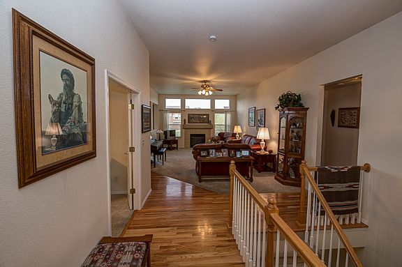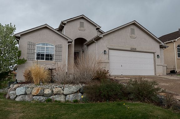 Gorgeous Ranch style home with full walk out basement in popular Jackson Creek! Wood floor entry. Eat-in Kitchen with Pantry & Wood floors walks out to a 10x8 wood deck. Large Living room with fireplace on main level. Master bedroom with bay window & walk-in closet has an attached 5 piece master bath. Office & Second bedroom on main level. 9x6 Laundry room conveniently located on the main level. Spacious Family room in walk-out Basement. 3 additional bedrooms in basement. Nice Mountain Views. Near Shopping, Schools, & Air Force Academy. Easy Commute to I-25.