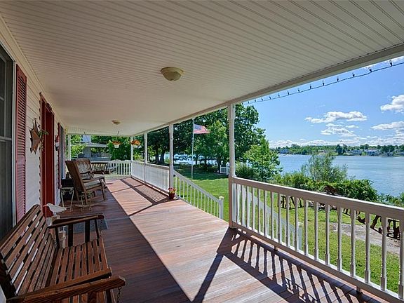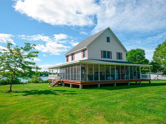 Custom built and impeccably maintained summer home on Historic Round Island. Main house built in 2000 with 3 bedrooms and 2 full bathrooms along with a guest cottage and bath. Large open eat in kitchen with living room and additional office or den. With more room to expand on the third floor for more living space. This home features a full wrap around porch for maximizing all the River views. Large screened porch for added living and enjoyment. With 175' of excellent waterfront for swimming and generous docking options. Easy walk up to house with 1.25 acres of flat land for games and fun. Large granite flat rock in front for bonfires and gatherings. Insulated and zoned with heat for extended stays. Selling fully furnished and turn-key for easy move-in this season. Round Island is 1 mile long and 1/2 mile wide with many trail options for exploring. Historic Frontenac Post office with daily mail delivery, and a tennis court for island residents. Easy commute to mainland and Clayton. This home offers many amenities for new owner's to enjoy.