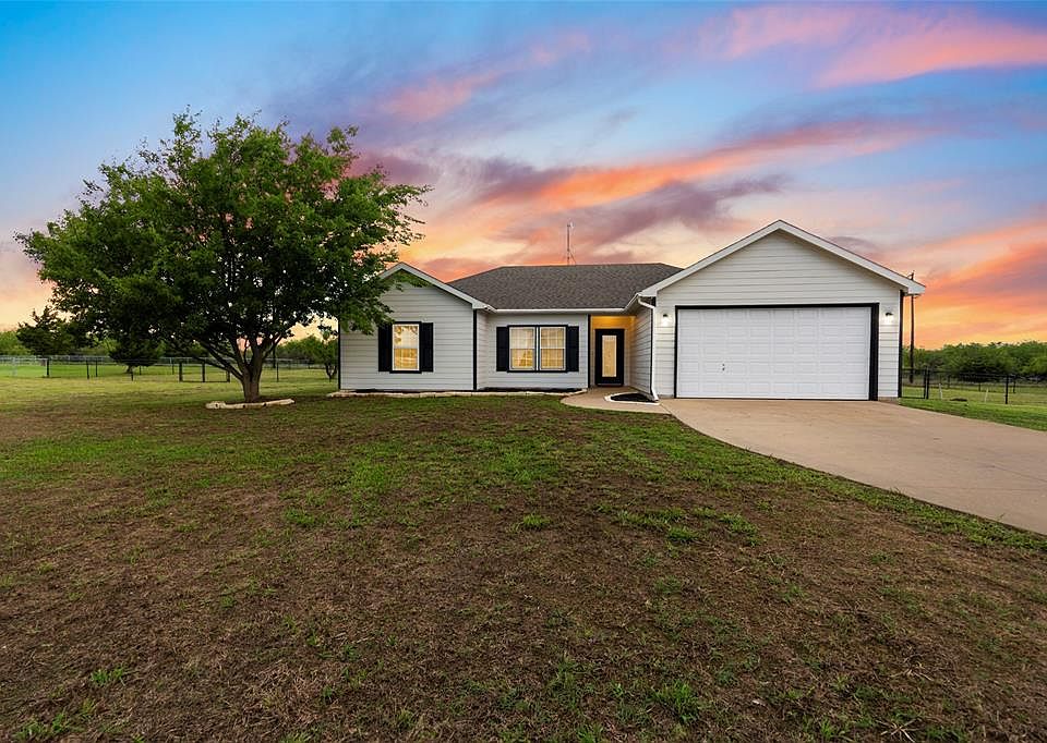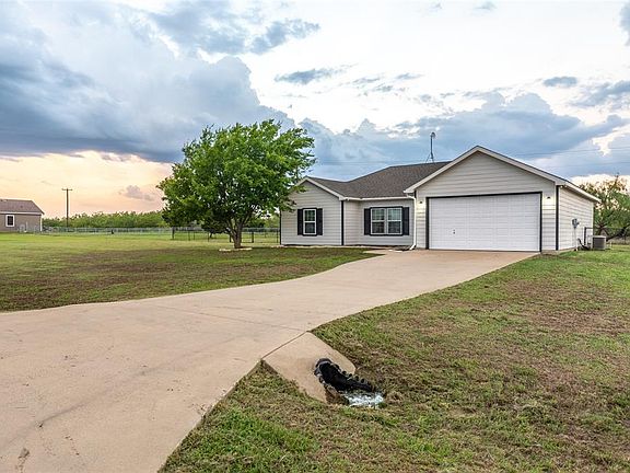 NEW ROOF Oct 2022! Here's your chance for your very own ONE ACRE slice of Texas! This 3 bedroom, 2 bath, 2 car garage home has so much to offer and has loads of parking available! The open and split bedroom floorplan offers a good sized primary room with ensuite bathroom. It includes spacious double vanities with a large garden tub and separate shower along with a fantastic walkin closet! The two secondary bedrooms are currently being used for offices and are conveniently located near the second bathroom with standard tub. The living room is large with multiple ways to position your furniture and adjacent to the kitchen for easy entertaining! There is tons of counter and cabinet space in the kitchen with ample room to pull up barstools or dine in the breakfast area! Utility room offers full size WD connections and shelving for plenty of storage. The backyard is fully fenced and has space for all your outdoor fun and relaxation with a heavy duty cedar covered patio! Come take a peek!