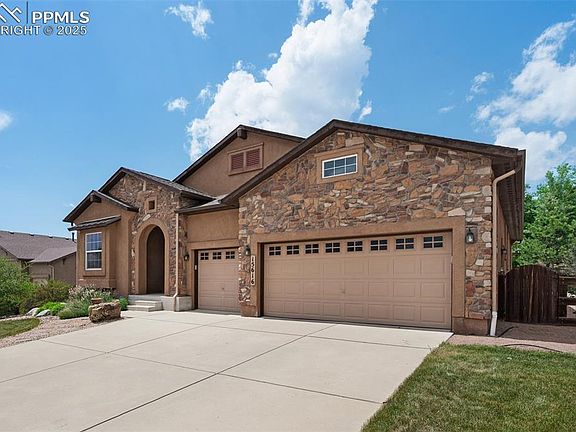 Welcome to this stunning 4-bedroom, 3-bath single-family home that perfectly blends comfort, style, and convenience. Located just minutes from I-25, the Air Force Academy, Fox Run Regional Park, and the charming boutiques and restaurants of Old Town Monument, this home offers breathtaking mountain views and a warm Colorado feel. The main level features rich hand scarped wood floors and a spacious living room with a gas fireplace, custom wood mantel, stacked stone surround, ceiling fan, and built-in niche. The formal dining room is ideal for entertaining, while the gourmet kitchen includes exotic granite countertops, a Frigidaire Professional gas cooktop, full stainless steel appliance suite, river rock backsplash, a Butler’s Pantry, walk-in pantry, and a bright eating nook. The luxurious main-level master suite includes a bath with dual vanities, a shower with bench seat, and a large walk-in closet, and direct access to the laundry room. A second main-level bedroom is perfect for guests or a home office, located adjacent to a full bath. The finished basement offers two more large bedrooms with walk-in closets, a full bath, and a massive storage area. Outdoor living is just as impressive, with an 18' x 10' covered patio, fully landscaped and fenced backyard, stucco and stone exterior, and an automatic sprinkler system. The oversized 3-car garage (29' x 21') includes a convenient drop zone at the entry to the home. Inside, you'll also find a laundry room with storage shelves and direct access to the master suite. Additional features include a central vacuum system, surround sound, a security system, and a 50-gallon water heater. This home is just 45 minutes to Denver, 10 minutes to Colorado Springs, and only 3 minutes to shopping. Don’t miss this beautifully maintained home offering luxurious finishes and a location that truly has it all - schedule your tour today!