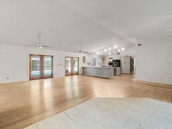 Enjoy Country Living yet Close to Everything! NO HOA & Ready to Update 1.17 acres, CBS 4 Beds + Den & 31/2 Baths Single Floor Ranch style home & Split Floor Plan. Upon entry to the Large Living area with Vaulted Ceilings & Open Kitchen. Master Bedroom features: Updated Bathroom & 2 Walk-in Closets & pool view. Other side of home has 3 bedrooms, 1 Full Bath & 1 Full Cabana Bath. Attached 2 Car Garage, Laundry Room, Office, Screened Patio, Large Pool, Fenced Yard, Lush Landscaping, 2 Zoned AC, City Water, Shutter Panels, Freshly Painted Outside + Detached 24x30 Garage + Large drive way. Bring your toys with lots of space for RV & Much More! Minutes Drive to: Beaches, Shopping, Dining, Parks, World Class Golf, Alton, Roger Dean Stadium, PBI, + top rated Schools! CALL NOW for a private tour FYI: