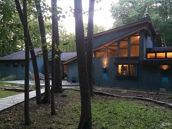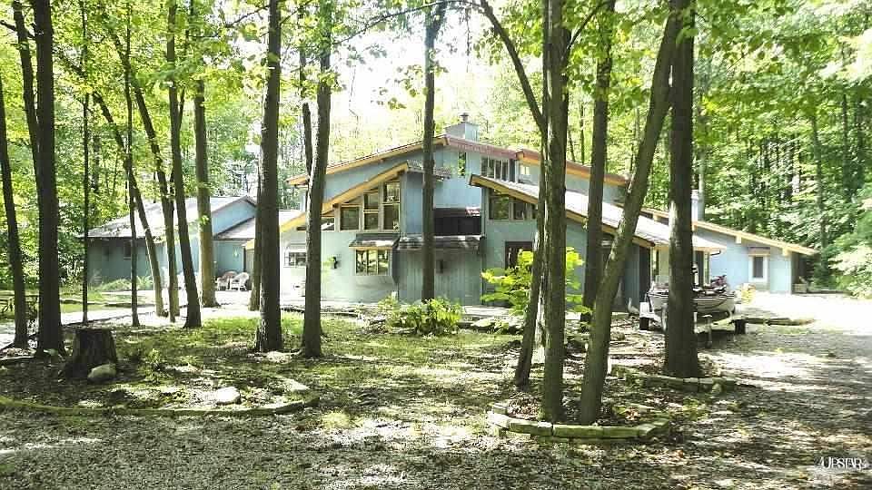 Large impressive contemporary home on a picturesque, wooded, 11 acre parcel with a pond. Beautiful grounds surrounded by woods. 3-car garage. Two master suites. Large bedrooms. There is a wood burning stove in the great room. You will love the expansive eat-in kitchen with a tile floor, pantry and planning desk. The formal dining room has built-in hutch. Large outdoor deck and patio. This property is enchanting and one of a kind. Assumable mortgage.