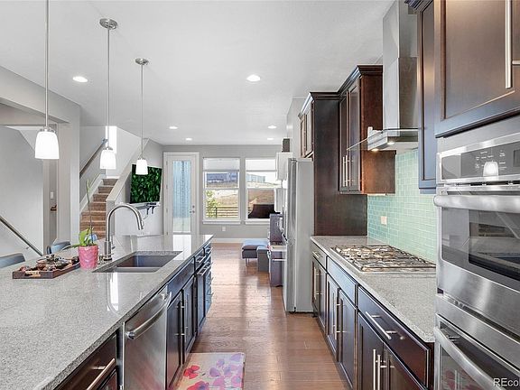 Welcome to this stunning contemporary three-level home, complete with a rooftop patio that offers breathtaking views. Enter through the ground-level foyer, where you'll find access to the attached 2 car garage and ample storage space. Upstairs, the main living level is the heart of the home. This level boasts an open floor plan featuring a gourmet kitchen highlighted by granite countertops, gas cooktop, stylish backsplash, and stainless steel appliances. A coffee bar, powder room, and a built in home office area add to the functionality and convenience. The west-facing covered balcony provides a perfect spot for relaxation and enjoying the Mountain views. On the next floor you'll find two spacious bedrooms, each with their own ensuite 3/4 bathrooms. The primary bedroom includes a walk-in closet and a spa-like bathroom with double sinks and dual shower heads in the upgraded shower. The laundry is also conveniently located on this level. Continue on up to the rooftop deck, where you can envision your very own outdoor oasis with stunning front range mountain views. This expansive area is perfect for entertaining, allowing you to set up an outdoor kitchen and living space to enjoy the gorgeous Colorado skies. Centrally located in Englewood, this home offers ease of access to I-25, C-470, Cherry Creek State Park, DTC, Park Meadows shopping area, and Centennial Executive Airport. This prime location ensures you are never far from the best that the area has to offer.