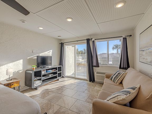 Step back in time with this charming Gulf-front studio at The Ambassador, a beloved Mom & Pop-style complex that captures the essence of Old Florida. This ground-floor unit offers easy, direct beach access making it the perfect getaway for a weekend retreat, short-term rental, or your personal beach home! Recently updated and beautifully furnished with a stylish, beachy vibe, this condo is move-in ready. Plus, this complex is a pet-friendly community for both owners and renters--complete with its own dog park! Location is everything, and this condo is in the heart of it all! Conveniently located to Shuckums, Gulf World Marine Park, and Pier Park for shopping, dining, and entertainment. Don't miss your chance to own a piece of paradise!