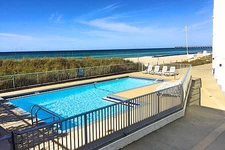 This Beach Front home is just steps away from the Gulf of Mexico. The property features 2 Full beds, a full bathroom, and kitchenette. This is a ground floor home that walks right out to the beach and pool. No hauling and lugging beach equipment around. Located in the Ambassador Complex. This property is a short walk to Pier Park, Shuckums Oyster Pub, Gulf World, Barefoot Hide A Way Grill and Sharky's. No car no problem! Just walk or take the Bay Town Trolley. Open Now until Mid March. Almost all bills paid. Water, Sewer, Trash, Cable, WIFI. Tenant to just pay part electric. Non Refundable $50/MO pet fee.