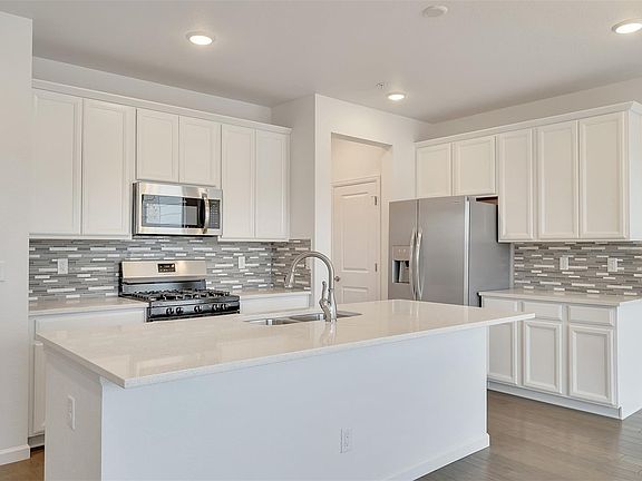 A brand new Cayson Plan located in Jackson Creek features: Awesome kitchen with: Quartz counter tops, gas 5 burner stove top, microwave, dishwasher, refridge and huge island! 42" upper cabinets in Tahoe Linen with full backsplash makes this a great room for entertaining. Upgraded Berber carpet. Jr. bedroom suite with private bathroom, laundry on bedroom level of home. Master has large closets and attached bath with shower seat, and adult height vanity. Open floor plan with dining room space. Full unfinished basement with 2-car garage with opener included. This home is available NOW! In nationally recognized School district 38, close to parks and trails. Just minutes to I-25, easy access to Denver and Colorado Springs. *Price reflects builder incentive for using Colten Mortgage.*