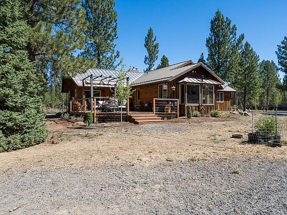 Cedar home on private 5 acres nestled in Pine trees, borders National Forest! Two ensuite bedrooms, family room & living room on main floor. Bonus Rm, office, storage room, & full bath in finished basement. Extra features: new furnace, new water heater, new electrical panel & updated electrical. Newer gas stove top, double ovens in kitchen & pellet stove. Finishes are in native wood. Home is well insulated & has a metal roof. Set up for animals. Detached shop/garage, barn, hay barn, parameter fencing & cross fencing. Prepped arena area (needs fencing). Miles of riding trails & less than 1 mile to Deschutes River. Near town for schools & shopping. Trees have been thinned for fire safety. Automatic gate entrance & circular gravel driveway, fire-pit area, covered deck in front & large deck in back. Spa hookup. Barn & loafing shed has autofill water for animals.
