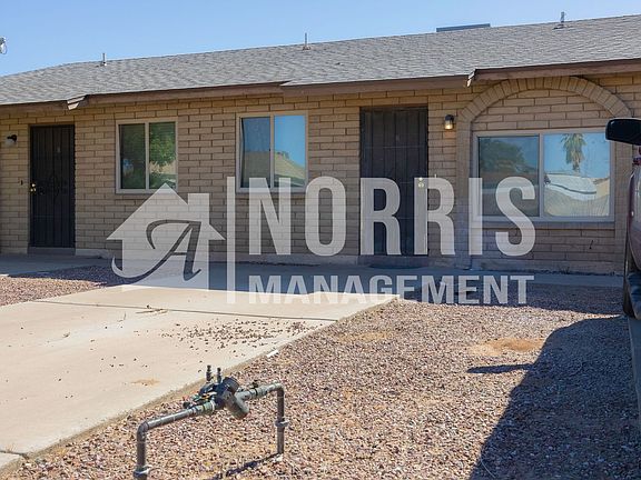 Welcome to your home located in Arizona City, Arizona. The property is located within 15 minutes to Casa Grande and nearby the grocery store. You will enter the kitchen with tile flooring throughout and carpet in the living area and the two bedrooms. Master bedroom has a sliding door to the rear patio where you will find a storage room. The kitchen is equipped with electric stove and a refrigerator. This property is convenience and affordability available NOW!