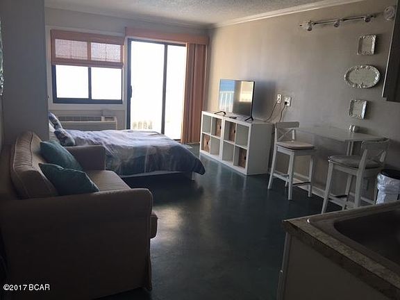 This is a second floor efficiency Unit 202, at Ambassador Beach Condos. Complex is within walking distance to shops, restaurants, City pier, Pier Park, and Gulf World.