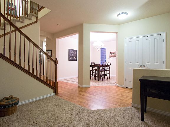 Catering to those who like options, this home provides plenty! Situated on a corner, the lot is large allowing you a 4-car tandem garage. The fenced backyard backs to open space where you can also enjoy mountain views from your covered patio. If you would rather, sunbathe or toast marshmallows on the huge uncovered patio. The backyard also offers a shed plus speakers. Inside you have a multitude of living space options. There is a formal living room across from the dining room with a stunning tile floor. The kitchen features a massive island with granite, stainless steel, double oven, and a butler's pantry. Adjacent to the kitchen is the family room with a fireplace and the laundry room. To add to your options, the upstairs offers a huge loft perfect for a play room or office area plus the master suite, two additional bedrooms and a secondary full bath. If that isn't enough, the finished basement could be a 4th bedrm with a 3/4 bath or a media/rec area. Around the corner from a park.