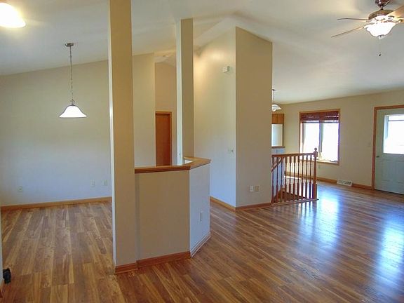 Enjoy your 9.9 acre property right away, in this move-in ready, 4 bedroom ranch! Open concept living at it finest with vaulted ceilings, open sight lines between the kitchen, living, & dining, but also has some separation to define the rooms. Perfect for entertaining! The kitchen comes equipped with an island, built-in desk, & titled backsplash. Three bedrooms on the main level, including a master suite with large dual walk-in closets, & an ensuite bath with dual vanity sinks, jetted tub, & walk-in shower. Another full & half bath along with laundry complete the first floor. The lower level is partially finished with a 4th bedroom (buyer to verify egress with municipality)/ rec space. The lower is stubbed for an additional future bathroom. Recent paint & some new flooring.