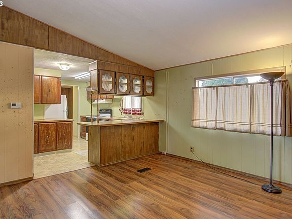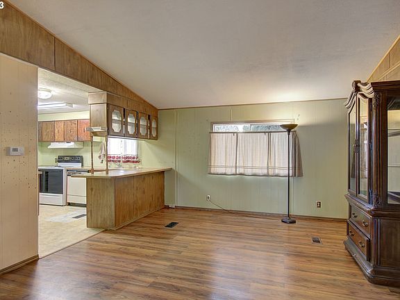 This Home provides 1,446sf of Living Space with 3 Large Bedrooms and 2 Full Bathrooms. Vaulted Living Area with cozy Pellet Stove. Kitchen includes Eat Bar, Pantry and all Appliances. Full Utility Room with Washer and Dryer and built in storage. Primary Suite is opposite other two bedrooms providing privacy and great floor plan! Accessible ramp from driveway onto large deck with backdoor entry for additional access. Front porch decking is new. Shed included for additional storage. Cosmetic upgrades needed but excellent opportunity to personalize and make it your own! Park is family-friendly! DONT MISS OUT!