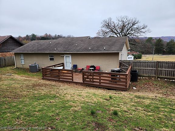 Very well kept 3 bedroom 2 bath home on approx. 1.25 acres. Nice open floor plan with large living room and split bedroom plan. Home is total electric and has all wood laminate and ceramic tile flooring. Features also include a large privacy fenced backyard, large wood deck and a covered front porch. Great location between Greenwood and Fort Smith and located in the Greenwood School District.