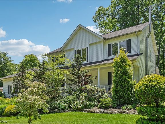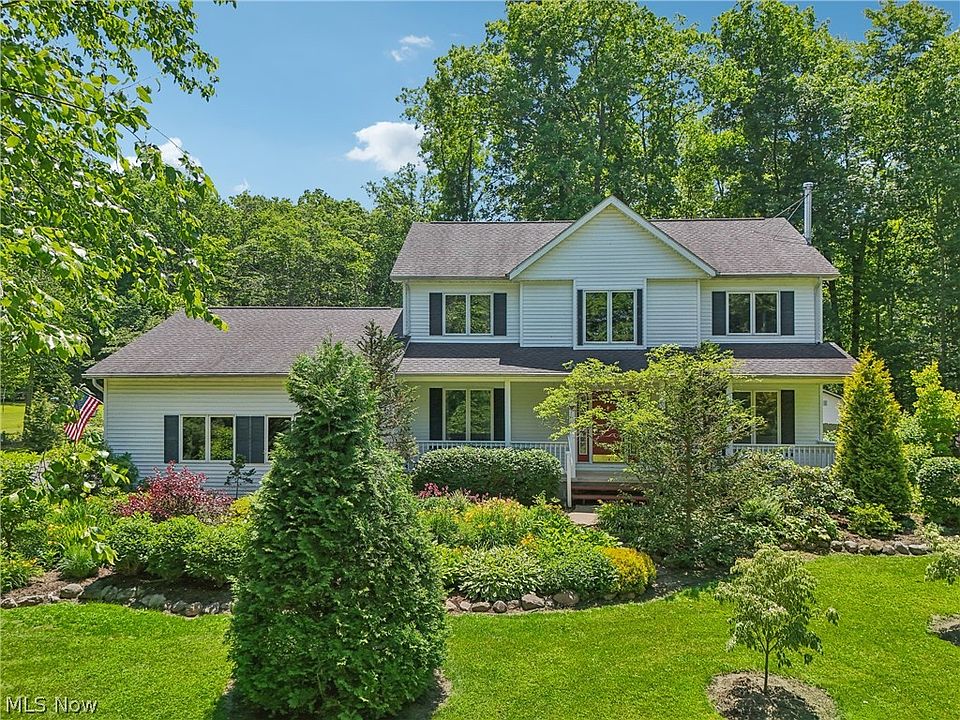 Welcome to this charming 2,046 sq ft colonial home that sits on 1.59 acres in beautiful Huntsburg. Nestled in a quiet neighborhood, this three-bedroom gem boasts an expansive front porch, ideal for enjoying tranquil mornings and evenings. Step inside to discover updated flooring throughout, enhancing the home's aesthetic appeal and functionality. A wood burning stove offers heat to the entire home, if the new owner prefers wood over using the furnace. The bedrooms have high quality new carpet, providing cozy retreats. The finished portion of the basement offers a space that could also be used as a fourth bedroom with a closet. Meticulously maintained, this home radiates pride of ownership. Mechanicals, most appliances and all of the big ticket items have been replaced within the last five years, most within the last three years (see list below).The spacious backyard is a private oasis, featuring a variety of specialty trees and lush foliage, creating a picturesque setting. A stunning water feature and fire pit area adds a touch of serenity, charm and a wonderful place to entertain. Trex decking was installed one year ago on the back deck offering a durable, low-maintenance space for outdoor gatherings and relaxation. With its blend of classic colonial architecture and modern updates, this home offers a perfect sanctuary for those seeking beauty, comfort, and a connection to nature.