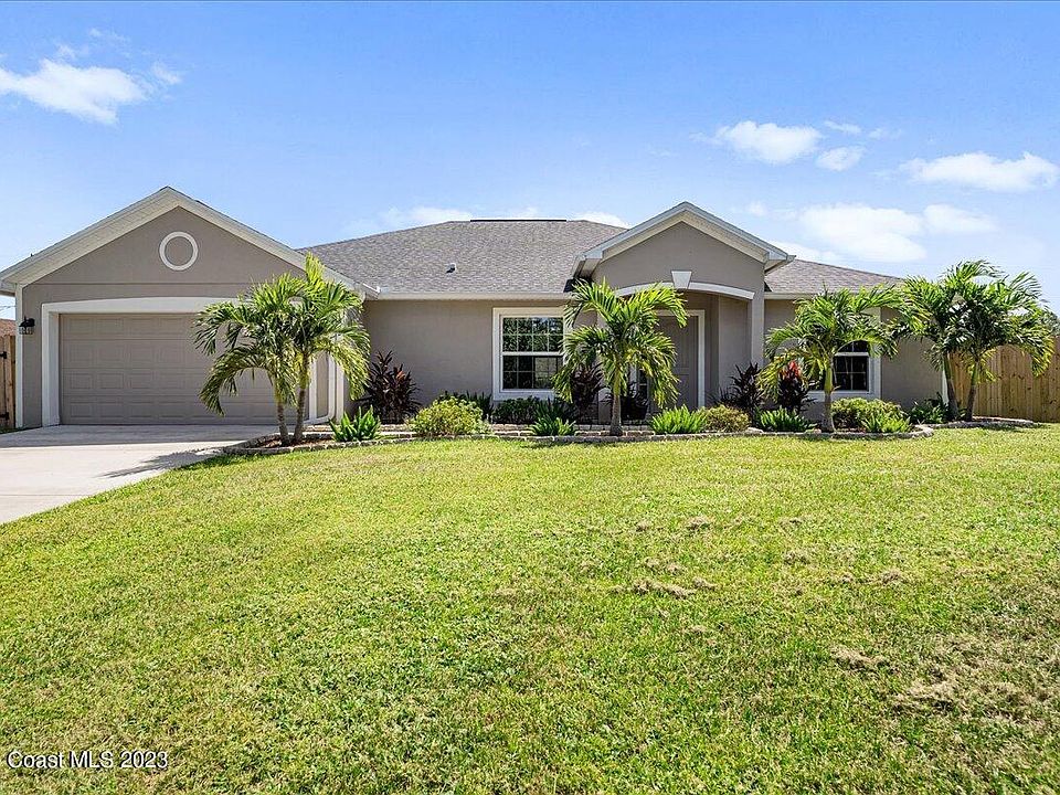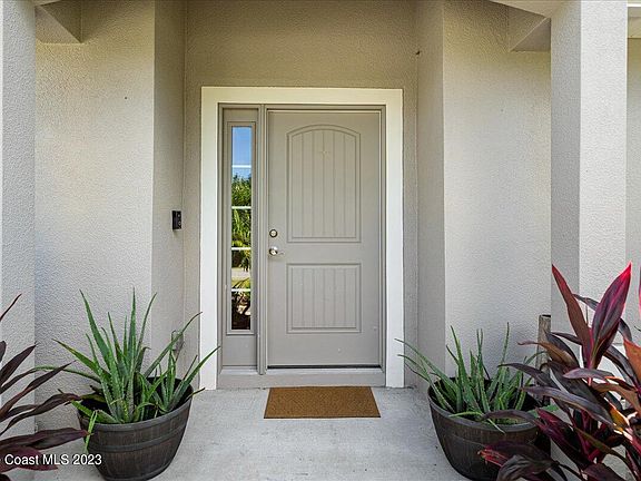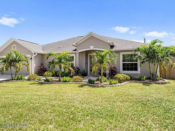 ***Sellers offering $5k credit for closing costs or rate buydown*** Like new home over 2100 sq ft with no HOA. This beautiful 2018 home located in NE Palm Bay has 3 bedrooms and 2 bathrooms with a bonus room/office that can easily be used as a 4th bedroom. The wide-open floor plan has a large breakfast nook, formal dining area and large indoor laundry room. The kitchen boasts granite countertops, stainless steel appliances, breakfast bar and 42-inch upper cabinets with crown molding. The master bedroom and living area stun with tray style cathedral ceilings making the spaces feel even larger. The home is equipped with dual pane windows throughout including the dual pane slider leading to your trussed porch. Only minutes from shopping and I-95 and a short drive to beaches.