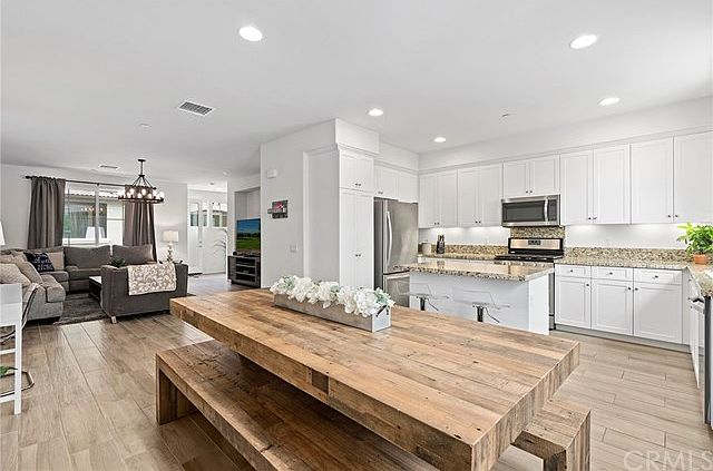Luxury living awaits in this newer model-infused townhome in the new neighborhood of Fifteen 48 with central location to freeways and heart of North Orange County Designer finishes, spacious floor plan and cool neutral tones blend seamlessly to create a sophisticated setting for this desirable home. Entering on the main level, a private en-suite bedroom with patio is ideal for friends and family. Direct access into the two-car garage is situated off this entry area. On the middle level, you will discover the heart of the home, an oversized great room with a refreshing private balcony, plus a light and bright granite and stainless kitchen with generous storage and convenient center island for your casual dining needs. Formal dining area plus powder room complete this level. The upper level offers two en-suite bedrooms plus a convenient inside laundry area. The primary suite boasts a generous walk-in closet, plus dual vanities and sumptuous oversized shower. The second bedroom with full bath enjoys a sunny oversized window and is finished with wood-look tile flooring. Outdoor enjoyment begins on your private patio surrounded by a neighborly picket fence. A community BBQ area, plus fun tot lot just steps away, ready for warmer days ahead. This home is ideally situated near plentiful shopping, grassy parks, and easy freeway access. Newer construction, impeccable condition, and desirable finishes make this home a real find
