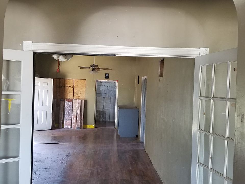 Two buildings on one property. Front house is setup for restaurant/concept idea in front room. Large industrial kitchen space, two additional rooms, shower, and restroom-all in front building. Back building is 1200 square feet and can be used for storage/ warehouse-A/C in back building. Property provides over 10 parking spaces and is approximately 1/4 acre. Tenant pays all utilities