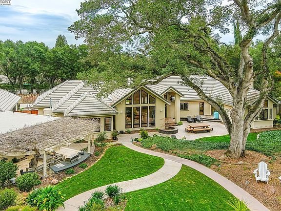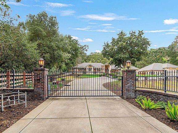 Welcome to your private sanctuary nestled on a sprawling 2-acre estate, where luxury meets tranquility. This exquisite single-family home boasts 5 Beds and 4 Baths alongside an additional ADU studio with its own bath, offering both opulence and practicality in a single-story layout. An open floor plan, vaulted ceilings and expansive windows, bathe the interior in natural light. The gourmet kitchen is a chef's dream, featuring luxury stainless steel appliances and a large wine cellar, ideal for the wine enthusiast. The primary bedroom retreat features a cozy two-way fireplace into the primary bathroom with a jetted tub that overlooks the private and lush backyard. The property also includes an ADU studio with a bathroom and kitchenette, providing versatility and potential for various uses. Outside, you will find a vintage water tank, built-in BBQ area, pool, and a lighted basketball court easily adaptable into a popular pickleball court. The property offers a small vineyard of Cabernet grapes, ready for crafting into your own label of wine. The expansive 1700 sqft garage, equipped with epoxy sealed floors, a car lift and 9 parking spaces with integrated air compressor, caters to car aficionados and hobbyists alike. Open House Fri 2/9 10-1p & Sat 2/10 1-4p.
