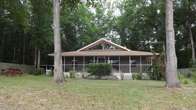 Cute cottage with dock on water. Beautiful views from great room and screened porch. Two covered parking areas. Separate storage building and screened area with sink to clean all the fish you catch off the dock. Needs some TLC and updating to make it you own.