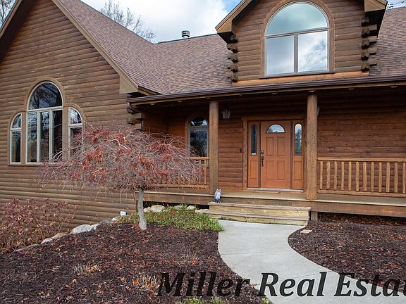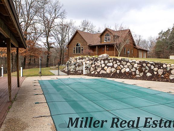 Indulge in rustic sophistication with this exceptional custom-built log home located between Hastings and Middleville near Algonquin Lake. Nestled within a natural landscape, the home unfolds with open-concept living spaces, revealing a meticulously planned layout. Main Floor features breathtaking living spaces with open sight lines throughout Great Room, Dining and Kitchen Areas. Kitchen features updated Quartz Counters with large Pantry cabinetry and stainless appliances. Floor-to-ceiling windows frame breathtaking panoramic views within Great Room, dual sided stone gas log fireplace with 22' cathedral ceilings that merge the interior with the surrounding natural beauty. Main Floor additionally features Bedroom that is currently used as an office, Full Bathroom and large Mudroom with access to 2 stall attached Garage.