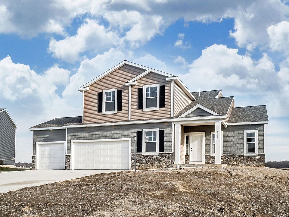Southwest Allen School District. Finished New Construction home. 5 bedroom 2 story, 2.5 baths, Partial unfinished basement, pre-plumbed for future half bath. Bonus room on second floor. 4 bedrooms have walk in closets. Oversized 3.5 car garage. 12' x 12' deck, 10' x 12' covered front porch. Large pond lot. Open living on first floor with Grand Foyer Entry, corner fireplace, large kitchen space with island w/bar, walk in pantry. First floor laundry room with Family Lockers and Laundry Chute. 4 nice sized bedrooms up plus Bonus Room providing a great space for Study/Play area. Large bath with double sinks. Large 5' x 8' walk in linen closet. First floor master with large walk in closet, double vanities, separate john room, shower is ceramic. Kitchen has Quartz Counter Tops. Both Full baths have granite counter tops. .