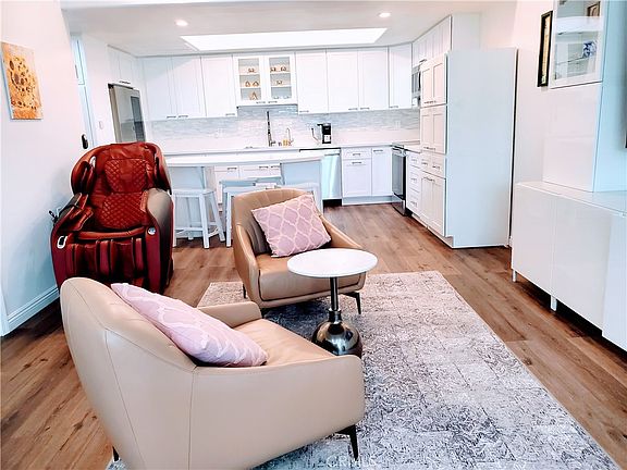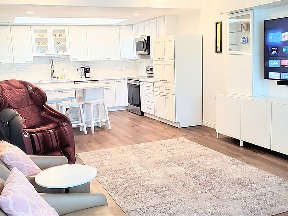 This stunning 1bed/1bath home was fully expanded 2021 summer to early 2022 at a cost of approx. $150,000, using premium materials, meticulously equipped with what you need to use and enjoy without discomfort, and is located at Leisure world in Seal Beach. Features: High grade SPC vinyl planks throughout the unit, recessed lighting, open concept kitchen features a beautiful spacious quartz island that eliminates the need for separate dining table, new full-size stainless-steel refrigerator and dishwasher, microwave, free-standing full-size oven/range combo, and large single sink with pull-out faucet, and quartz counter with beautiful tile backsplash, a huge skylight is automatically opened and closed with remote control and automatically close when it rains, letting in ocean breeze and bright light making the house brighter and cooler, extra cabinet for plenty of storage. Living room; a heat pump to keeps the entire home cool in summer and warm in winter, white cabinet with large TV stand and plenty of storage, ceiling fan, solar lighting, a stylish bay window that makes the living room more spacious is a double glazing. Bedroom; you can open or close the large sliding door installed towards the living room so you can enjoy a larger space while watching TV in the bedroom, there is a side door leading to the porch from the bedroom. Bathroom; cut-down shower, skylight, built-in cabinet. The storage room is next to the entrance; you can organize various items in the new iron cabinet. The entrance door and storage door are key-fob-lock systems. You can "park right in front of the unit," and the carport is nearby, so it's very convenient. Come and see you'll love this comfortable and charming home. 9-hole golf course, swimming, Jacuzzi, gym, billiards, paddle tennis, banquet room, etc. and there are 6 club houses featuring; art room, craft, wood shop etc. and over 200 clubs. Medical center, pharmacy, library, cafe, post office, RV storage. You can also enjoy movies and live music May through September in the summer season at Amphitheater. Leisure world is very safe for the 55 + senior community, with 24-hour security guards, and patrol cars patrolling the complex from time to time to see if there are any inconveniences to residents. Mutual 2, Carport building 27, space #9. This home is "sold as-is".