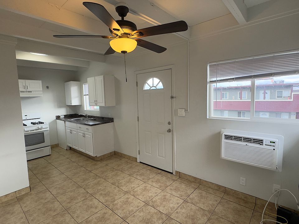 Tiled flooring throughout for a sleek, low-maintenance look. Freshly painted walls and ceiling fans provide a bright, inviting atmosphere. The kitchen features granite countertops, white cabinets with brushed nickel hardware, a gas range, and a refrigerator perfect for cooking and entertaining. Comfortable & Practical Features Stay warm in winter with a gas heater and cool in summer with an in-wall AC unit. Ample storage space ensures your belongings are neatly organized. Added Conveniences One assigned parking space included. Access to on-site laundry facilities. 6 Month, 12 Month, 18 Months Pets Allowed Assigned Parking included in rent