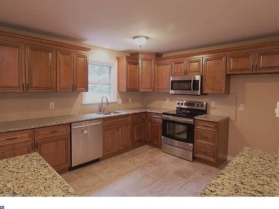 Nothing was spared for this renovation! Large Lower Pottsgrove single on a nice lot in an established neighborhood. Enter into the open main level featuring spacious living room, dining area and beautiful kitchen with new cabinets, granite counter tops, tile floor, upgraded stainless appliances and bar seating! This level also boasts an updated full bath, and three bedrooms including a master suite with walk-in-closet and full master bath! Downstairs in the lower level you will find a family room with stone fireplace, half bath and a custom oak bar area with sink and mini-fridge for entertaining. The 4th private bedroom, large bonus room and laundry room with walk out are also downstairs. In the back of the home you will find an over sized deck as well as a nice yard with mature landscaping and shade. Brand new efficient heat pump and central air conditioning was installed with electric baseboard heat for back up. This one will not last long! Take a look today!