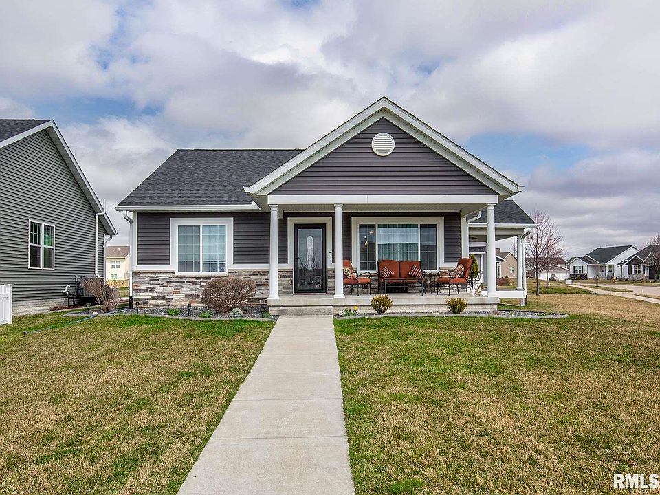 Pending - Continue to Show. Showings and Back-Up Offers Welcome until Inspection Contingencies are met. Beautiful 3 bedroom, 3 bathroom ranch home on a spacious corner lot, directly across from Prairie Heights Park. This home has a open concept floorplan with multisided fireplace that divides the living room from dining space. Gorgeous kitchen with plentiful cabinets, kitchen island and pantry closet. Main floor laundry in mudroom that is at entryway from a coveted 3-car garage. Tall vaulted ceilings with ceiling fans. Finished basement with full bath, 3rd bedroom and 4th non-conforming bedroom/den as well as plenty of unfinished storage space! Beautifully landscaped yard and much, much more!