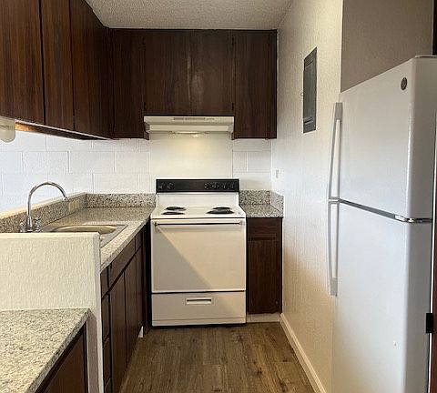 Recently renovated 1 bedroom 1 bath with one covered parking stall. This unit is in a 4 story walk up secured building. Coin-operated shared laundry on site. Upgrades: vinyl flooring, granite counter tops, new ceiling fans, new bathroom vanity. On bus line, easy access to freeway. Rent includes water and sewer. No pets, no smoking allowed in unit. Renter is responsible for electric, cable, internet. Water/sewer included in rent. One year lease term.