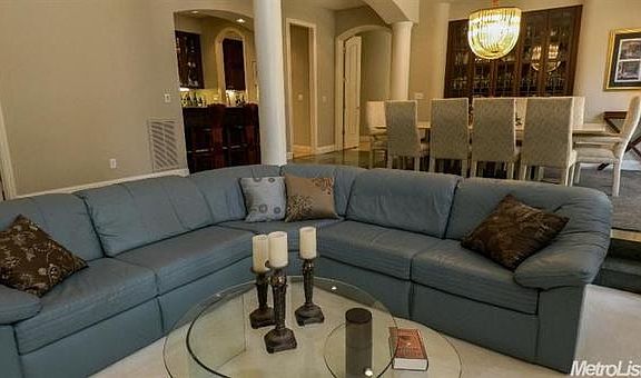 This truly custom home designed by Donald Joseph's architectural firm has beautiful Mediterranean architecture inside and out, including columns, curved walls, archways, and barrel ceilings. The almost 1/3 acre lot was professionally landscaped with a courtyard fountain, four patio areas, redwood trees, backyard pond and waterfall. The 4th bedroom is currently used as a media room. The two person office could be a 5th bedroom if needed and still have a cozy library with fireplace.