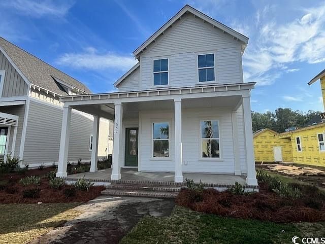 Builder is a Popular Regional Builder in North Carolina/South Carolina markets for over 30 years building Low Country/Coastal Style New Homes. Always paying attention to architectural details. Quality and Customer service is tops with this builder! Now building in SayeBrook...a new home community centrally located . SayeBrook is a master planned community near SayeBrook Shopping center, restaurants, 2 miles from ocean , near Market Common District, airport, and Murrells Inlet. Amenity Center is under construction and pool should open in August. This is the Banbury Plan with primary bedroom (13x17)on first floor, oversized laundry room with built-in, power room, separate dining area, kitchen island, two spacious bedrooms, bath, and 15x 14 loft(bonus room) on second floor . You will love the 10 ft. ceilings in family room, kitchen and dining. 9 ft. ceilings other remaining areas. Abundance of windows in this beautiful home. Five panel doors throughout. Detached 2-car garage, space for outdoor living in rear and side corner of home. Beautiful designer touches. Engineered hardwood floors in main areas,loft and bedrooms, tile in baths and laundry. Quartz countertops in kitchen and baths, built-in bench in laundry room , tiled walk-in shower in primary bath. Lovey kitchen -open plan with large island, natural gas cooktop with vented hood, Wall oven/microwave. Beautiful Timberlake Cabinets, window above kitchen sink, lots of windows throughout home allows bright natural light. Lawn sprinkler and security systems installed. NOTE: Detached 2-car garage sq. ft. is not included in total sf. .Life is good at Sayebrook. Beautiful tree-lined streets with sidewalks, parks, walking trails, lakes, under construction- community meeting house, pool, covered pavilion, playground, basketball court, pickleball court, and fire pit. Coastal, small-town charm within walking/golf cart distance to Sayebrook Town Center. A natural gas community.