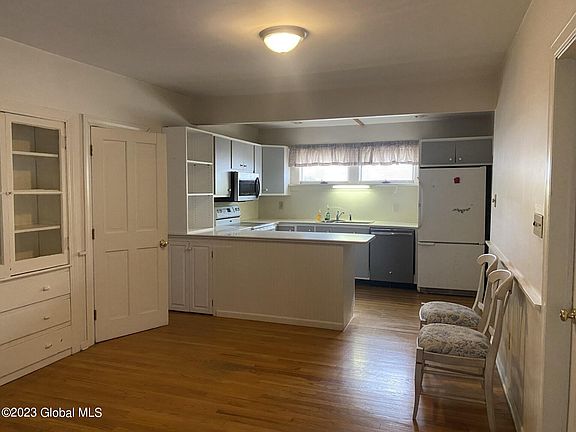 Former home office for dental practice with additional apartments. The office includes a staff lounge area converted from an apartment with half bath and kitchenette, easily convertible back to an apartment. The property also contains two additional apartments. One apartment is a one bedroom, living room, kitchen and full bath. The second apartment was designed as a single-family home. It is two stories, living room, two full baths, two bedrooms, second living room. The property also has a large garage/barn structure with double doors, one 8 foot wide by 14 foot tall, as well as loft storage space over the right half. Perfect opportunity for owner occupied or mixed use rental. Same owner for 35 years. Great visibility on State street.