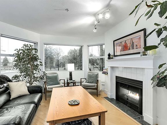Rain Screened, worry free building looking over park with mountain and city views. Large terret-like bay window in living room creating wonderful feeling of space. Gas F/P. This one bedroom open concept condo offers large walk in closet in bedroom with charming Juliette balcony. Exterior entrance giving a townhome feel. Perfect location for pet lovers having the park one floor down. Location is prime, steps away from West 4th shopping, Granville Island and more. 1 parking, 2 dogs or 2 cats, or 1 of each. No short term rentals. Showings by appointment only Sat/Sun 2-4pm.