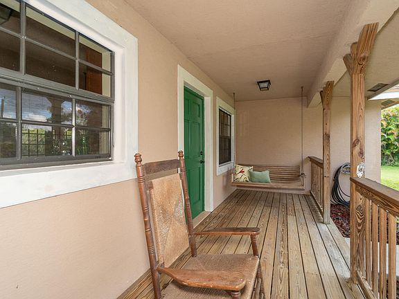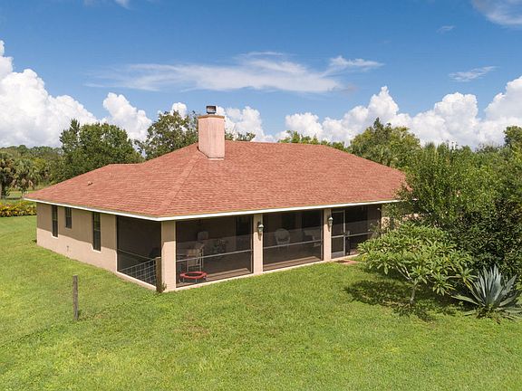 Here's a rustic charmer you must hurry on over to see! This fantastic CBS home features a newly remodeled custom kitchen, large island, granite counter tops/back splash and newer appliances. There's a wonderful ''open concept'' flow into living room that features a stunning, wood burning fireplace; the french doors extend your living area onto the over-sized, screened lanai-- perfect for entertaining! Lots of windows, updated baths; spacious bedrooms, the vaulted ceilings have recessed lighting; A/C just 3 yrs old; Nice cleared lot with fruit trees; private, fenced in back yard with two gates. The wooden front porch screams ''Welcome!'' and adds to the rustic character of this well-maintained home. Makes you just want to sit on the porch swing, relax and sip some lemonade!