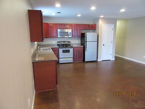 This 3 bedroom 2 bath duplex features all kitchen appliances, a front porch, outdoor storage closet, and small fenced yard area with back patio. There are two reserved parking spots per unit and the flooring is stained concrete throughout. Tenants are responsible for all utilities. Washer and dryer are NOT included in this unit. Pets are allowed, subject to restrictions, with payment of $200 nonrefundable pet fee per animal. Available September 1.