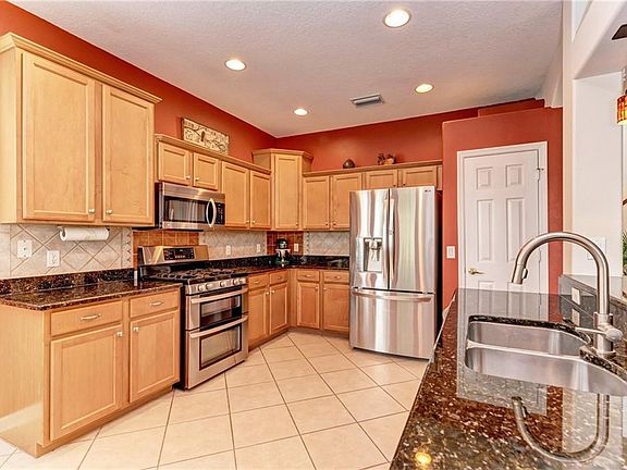 Wonderful new listing in Greenbrook Banks. Spacious 2-level home features Master Bedrm on main level + 3 Bedrooms + LOFT Upstairs. Bright, open floor plan with Large Dining Room + updated kitchen w/ granite countertops and solid wood cabinets. Newer Stainless Steel appliances w/ GAS COOKING. Breakfast area in kitchen + counter w/ stools. Large Family Room off kitchen w/slider to nice lanai which overlooks fully fenced back yard and pond! Space for future pool! King sized Master Bedrm on main level + Bathrm w/ two sinks, soaking tub and separate shower. Nice walk-in closet. Study/office, half bath and laundry rm. Large loft upstairs + 3 Bedrms and 2 Full Baths. Beautiful new carpet, tile floors and laminate in office. Plenty of space for everyone. A-Rated schools, Close to Stores, Restaurants, Post office. Easy commute. Don't miss this beautiful home.