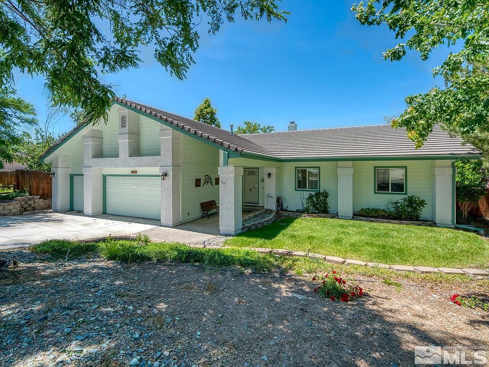 Beautiful one-story residence situated on a spacious half-acre lot, boasting 3 bed, 2 bath, and a 3 car garage. This wonderful home showcases newer flooring throughout, a generous backyard w a deck and large mature trees w a collection of rose bushes and fruit trees throughout. Conveniently positioned near the Summit Shopping area with easy access to a variety of popular restaurants, retail outlets, and entertainment options., Additionally, this prime location is just a mere 15 miles from the renowned Mt Rose Ski Resort & 30 miles from the famous Sand Harbor beach. This spacious real estate listing boasts a fantastic great room as its living area, designed with an expansive open floor plan complemented by high ceilings, a ceiling fan, modern appliances, a breakfast bar, and a cozy fireplace. To add convenience, the purchase includes a refrigerator, washer, and dryer.