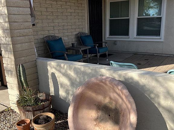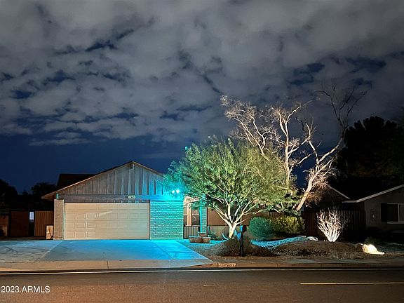 Split floor plan. Ceiling fans in bedrooms are remote controlled. New vinyl plank flooring in bedrooms and living areas, tile flooring in kitchen and bathrooms. Kitchen has new LG Appliance suite with craft ice maker. Updated Electric Panel 2021. Solar Installed 2021. New HVAC installed 2021. New roof installed 2023. Shaded courtyard patio in front of home and new covered patio in back. Custom landscaping in front yard with drip/water system. Room to park a small RV in gated/secure area.This cozy home is conveniently located 5 miles from Peoria Sports Complex, 12 miles from State Farm Stadium and Tanger Outlets, 11 miles from WestGate Ent Ctr. Centrally located to other amazing amenities and fun activities: Parks, Hiking, Golf, Museums, Concerts, Universities (NAU, ASU & ACU)