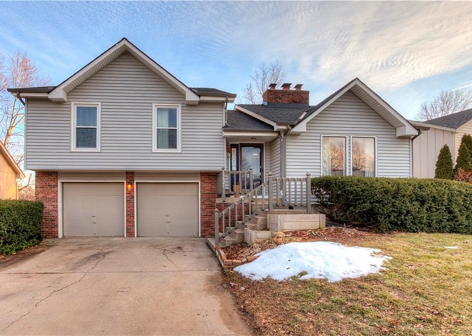 A brand new roof caps this sharp home and the front door opens into a large, vaulted living room. Main level includes open concept kitchen with updated appliances, dining area with access to deck, 3 bedrooms, and 2 full baths. Primary suite includes TWO closets and ensuite bathroom. Lower level family room with exposed brick fireplace walks out to backyard with raised garden beds and fire pit with a supply for firewood ready to go. Unfinished basement has interior access and provides extra storage space plus a utility bathroom - ready to finish into an additional half bath if desired! Newer furnace (2021) and Google Fiber availability are additional perks of this spacious home, located on a cul-de-sac in the desirable Indian Creek North subdivision within convenient proximity of elementary, middle, and Olathe East High School.