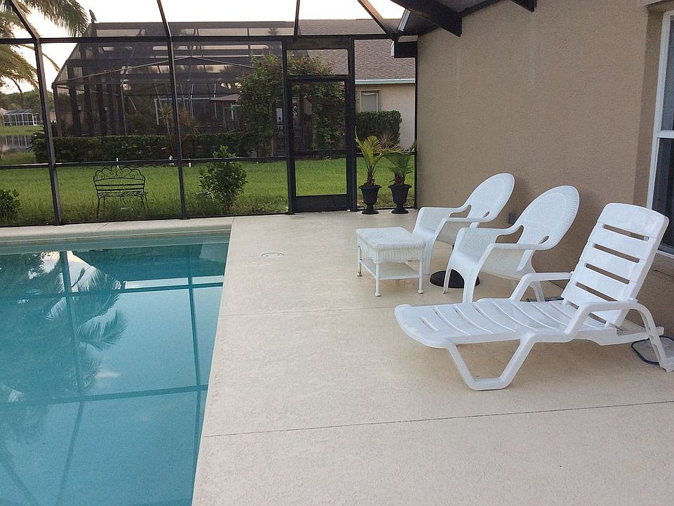 Block construction. With tie downs. Travertine tile,marble, carpet. Granite kitchen counter and stainless (2008). New AC in 2012. Pool,salt, with heater (2007) Exterior paint (2015).