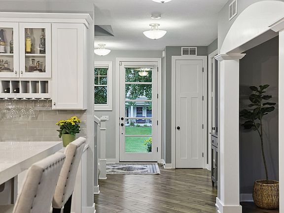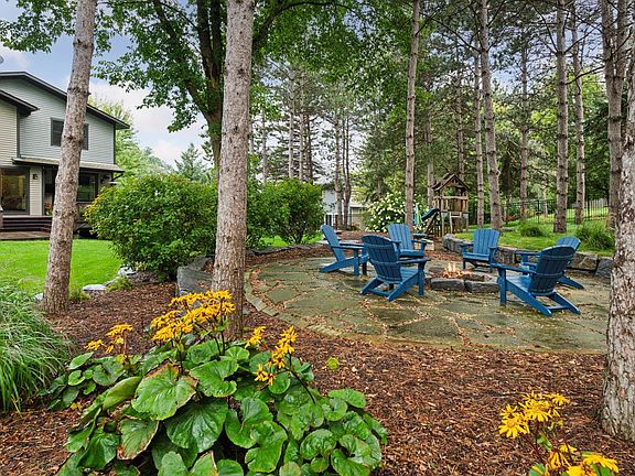 Introducing 15622 Michele Lane in beautiful Eden Prairie, Minnesota. This two story home boasts five bedrooms, five bathrooms, and a three car garage. From the moment you enter, this home stands out with thoughtful design upgrades throughout. The foyer features a custom built-in bench, with hand-scraped hardwood floors guiding you to the open living spaces. The gorgeous kitchen includes quartz countertops, white cabinetry, large center island, walk-in pantry, and a coffee/wine bar. The living room offers a gas fireplace, custom built-in cabinetry, and large sliding glass doors that open to the deck and picturesque backyard. A main-level flex room is perfect for the home office, or playroom. Upstairs, you'll find the luxurious primary suite, junior suite, two additional bedrooms with a shared Jack-and-Jill bath, loft, and laundry. The walk-out lower level features the family room with wet bar and guest bedroom with adjacent bathroom. Enjoy the fenced backyard showcasing a private and wooded 0.67-acre lot, patio and deck for outdoor entertaining, stone firepit area, sport court, and charming playhouse, nestled in the mature trees, all surrounded by gorgeous landscaping.